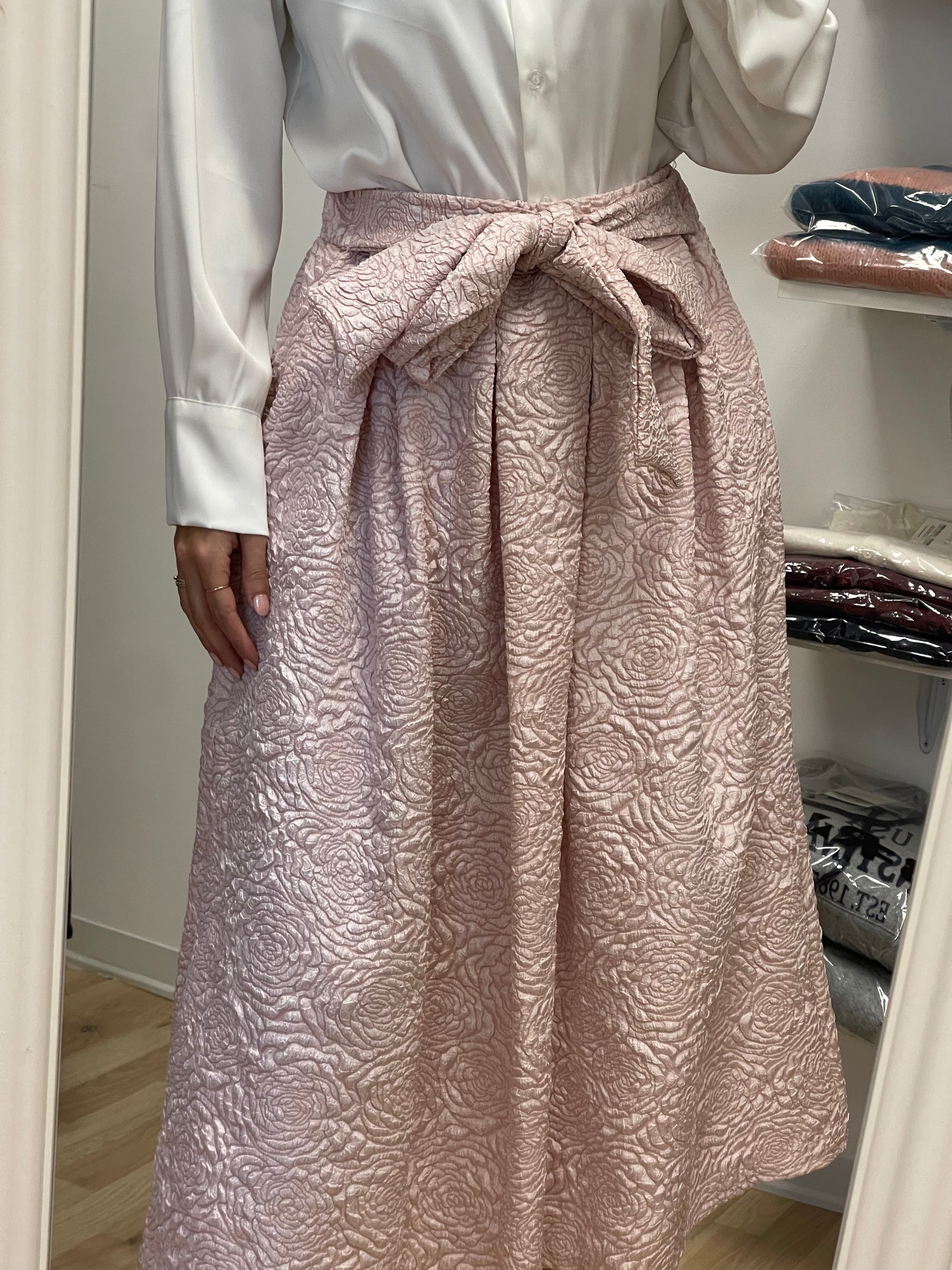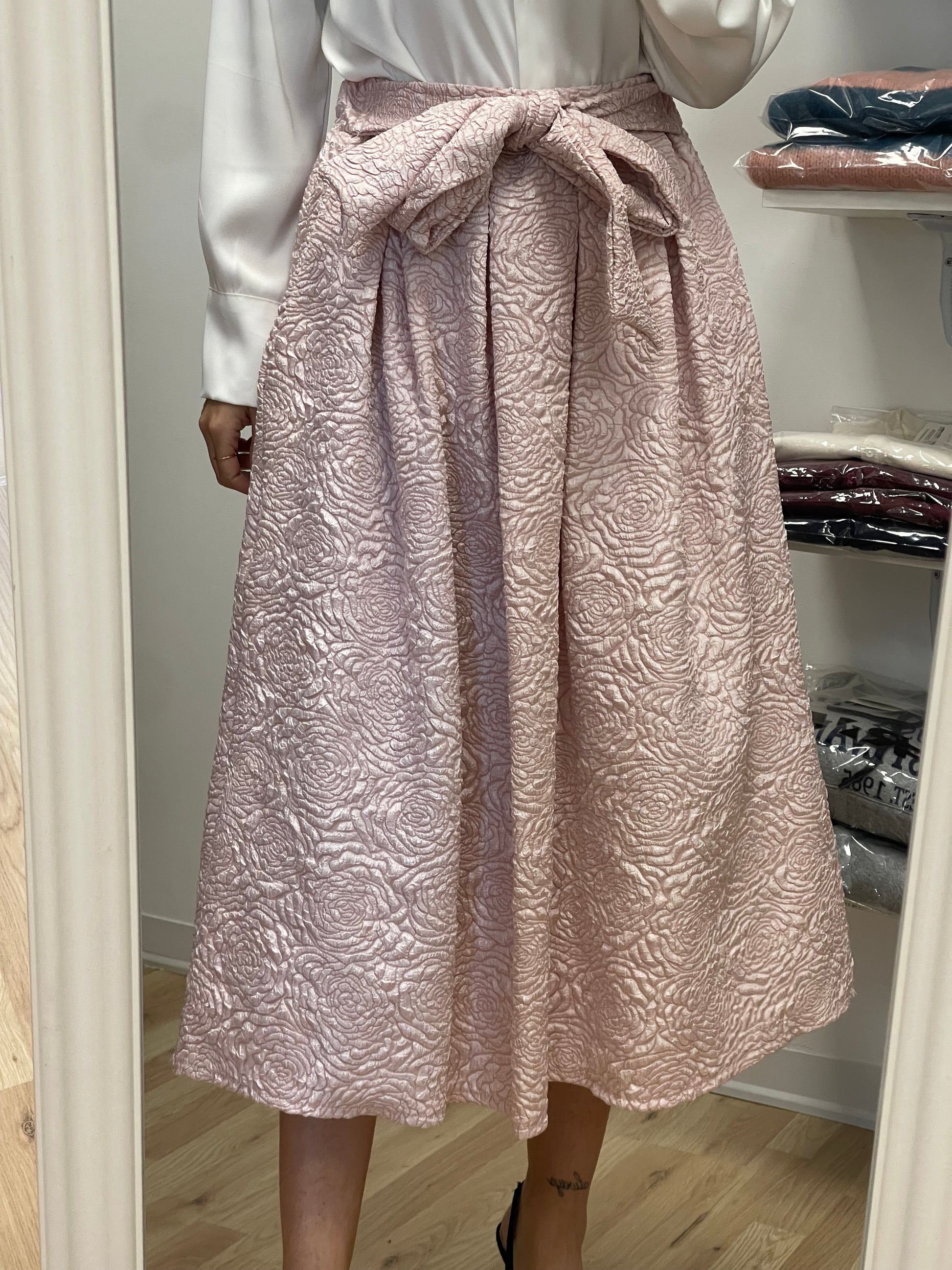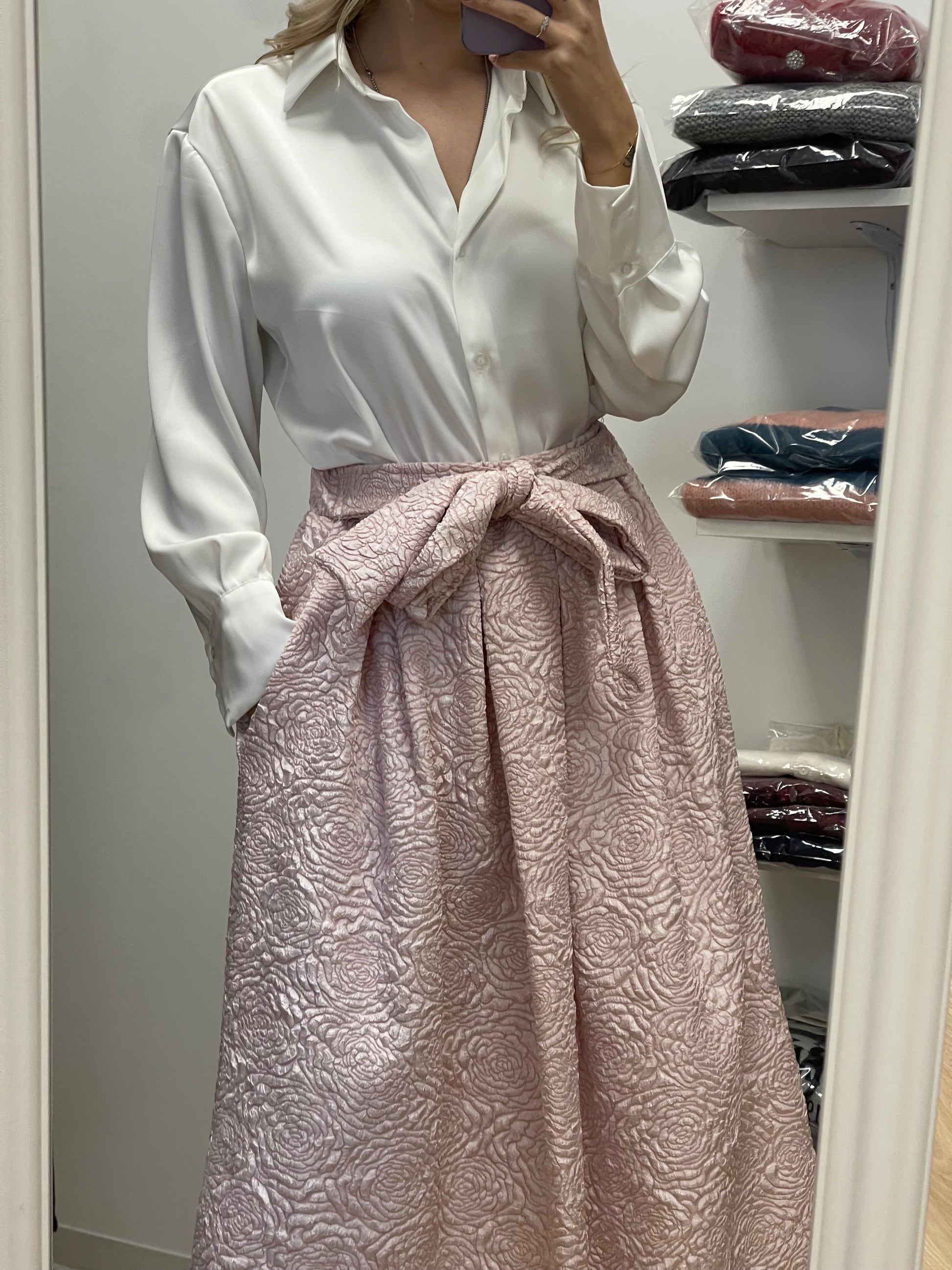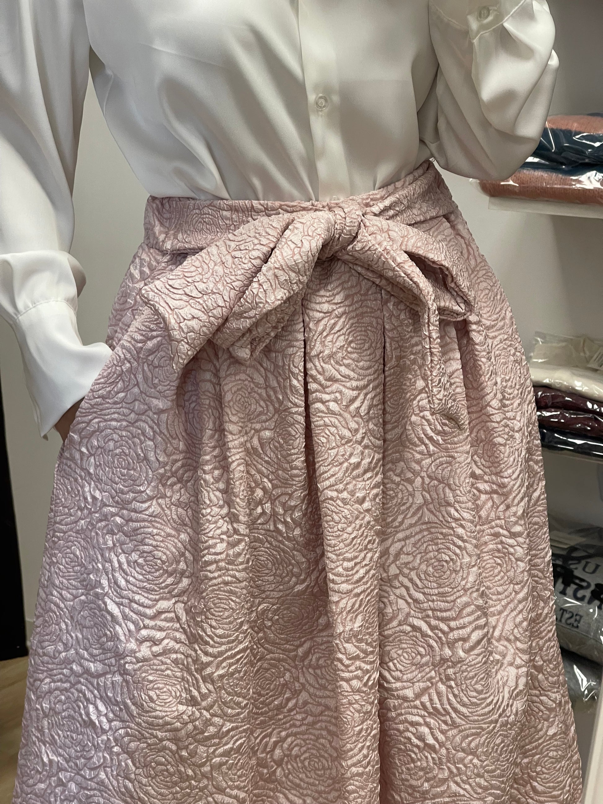 Gonna con elastico in vita e cintura fiocco e tasche