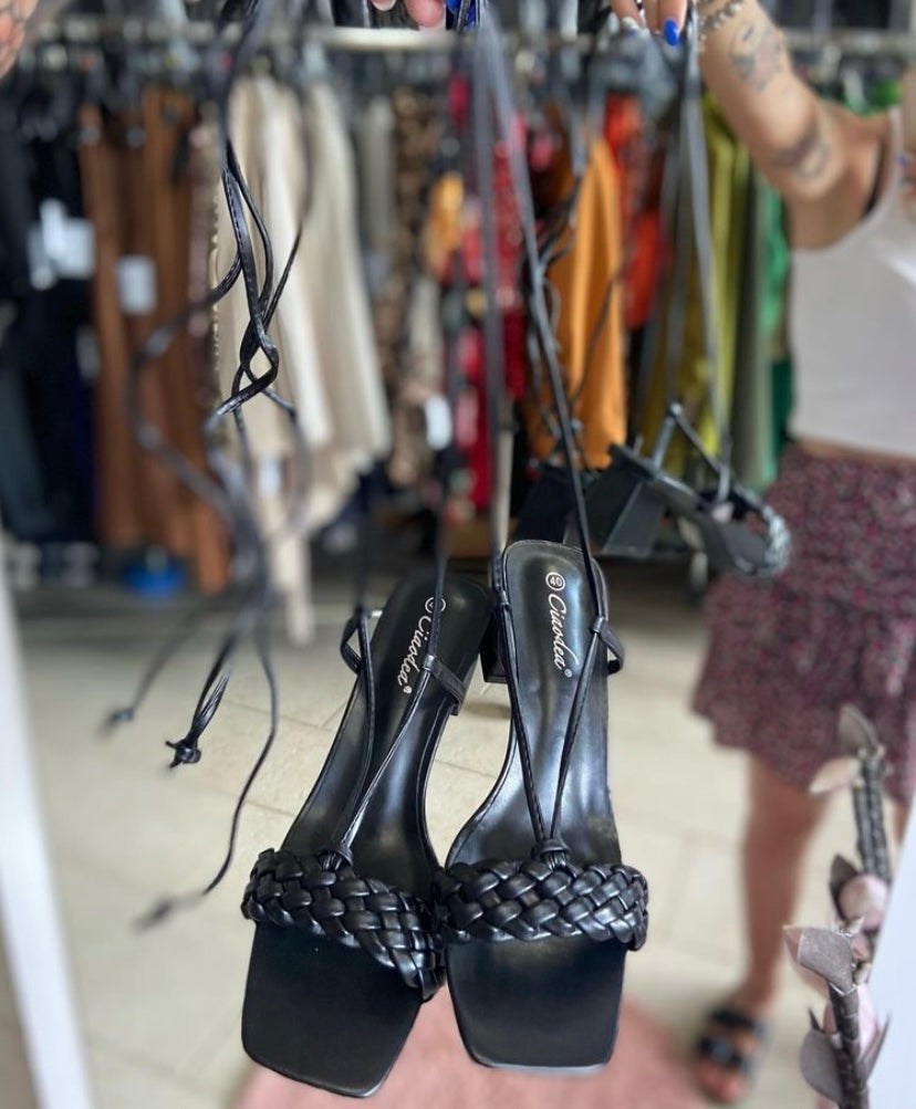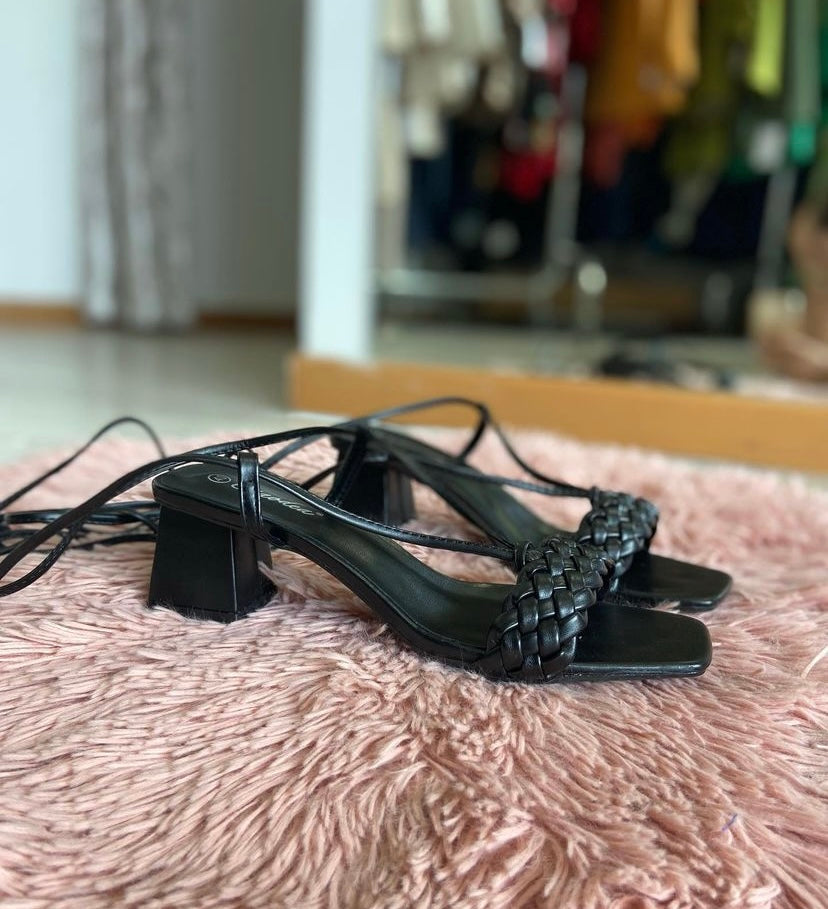Sandalo con mini tacco e intreccio