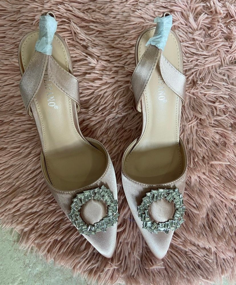 Tacco rosa cipria con dettaglio gioiello punta